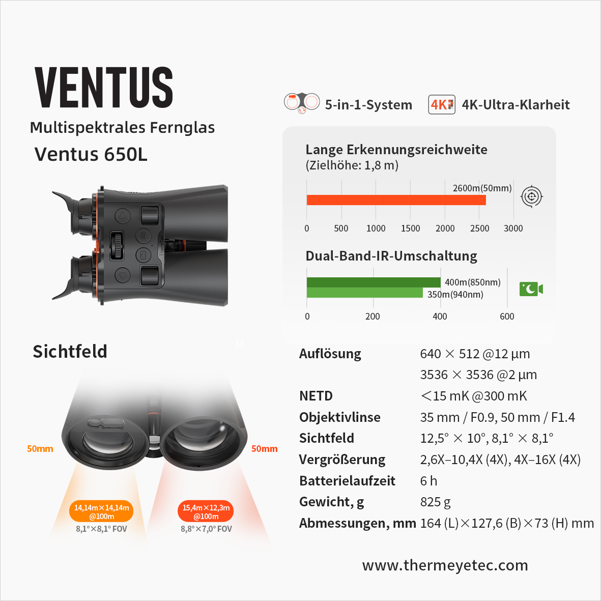 | Detektionsreichweite | 2600 m (Mensch 1,8 m) |